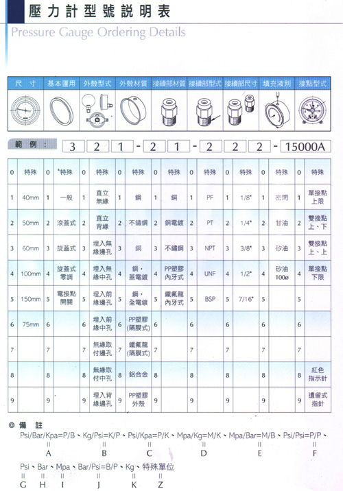 型號說明表