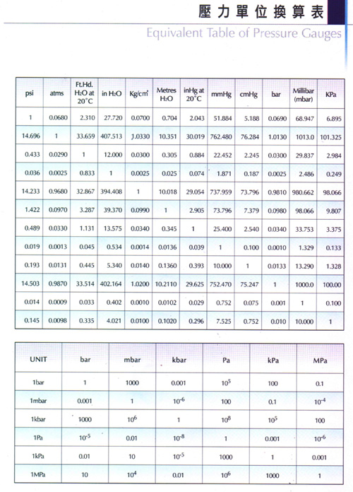 單位換算表