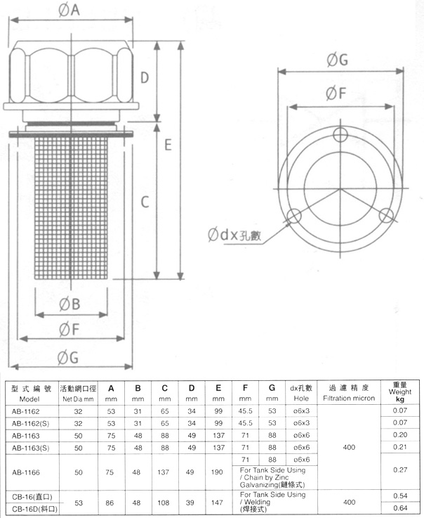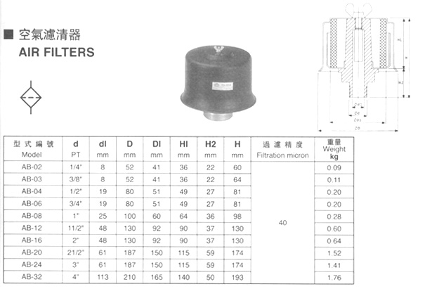 空濾器參數(shù)